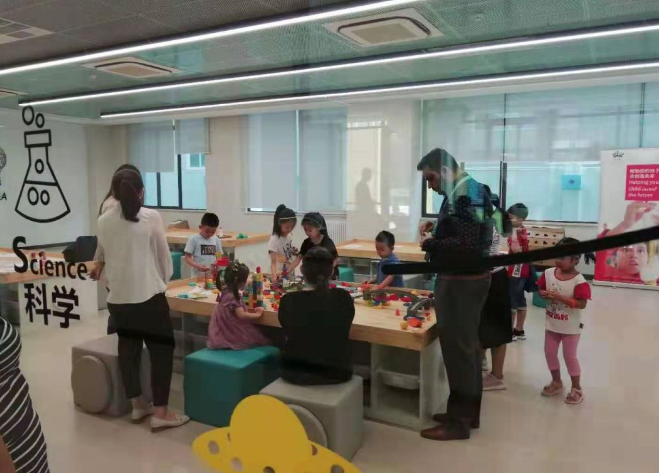 八节体验课是,英语、数学、国画、音乐、体育、理科、艺术、科学,每个体验课有两个老师,一个中教一个外教。另外还有阅读休息区,不想上体验课的孩子可以在阅读区看书。