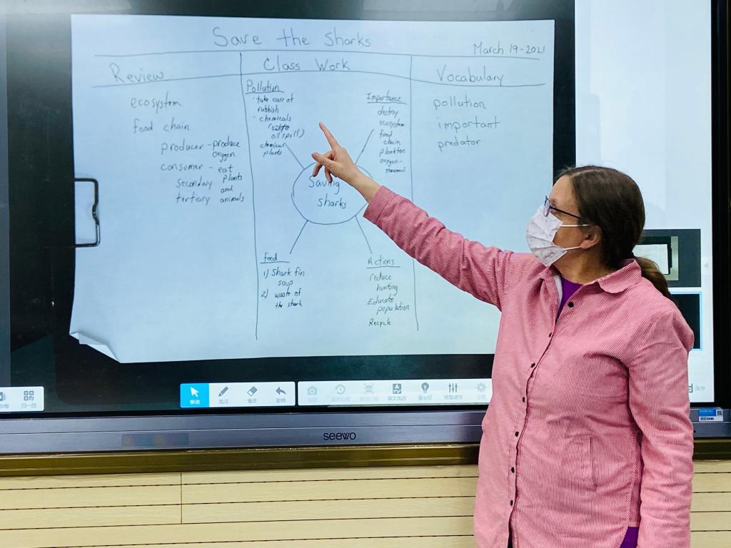 板书是一种课堂艺术,是一种可视的语言,也是传递教学信息的一种有效手段。好的板书不仅仅能展现教师对课堂内容的精心设计,也是教师综合能力的一种体现,渗透着教师的智慧、学识和教学艺术;同时结构严谨、美观布局的板书就像一盏指明灯般引导学生徜徉在知识的海洋。为加强教师之间对于“如何设计板书”的心得交流与学习,更好地促进教师的专业发展,打造更加高效的英语课堂,我校初中高端英语项目组于近期开展了主题为“如何设计板书”的教研活动。项目组的所有中教和外籍教师共同参加研讨,会议由项目负责人张丽君主任主持。