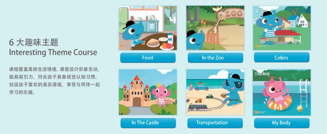 六大趣味主题课程,贴近生活,帮助孩子完成韵律节奏,熟悉语感;培养英语兴趣。
