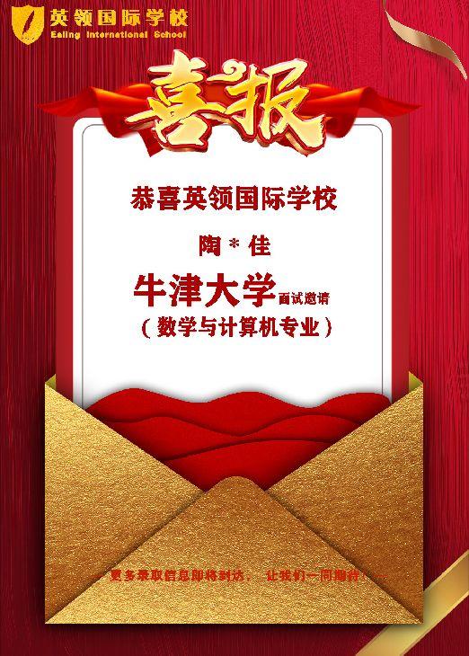 陶*佳收到牛津大学数学与计算机专业面试邀请;