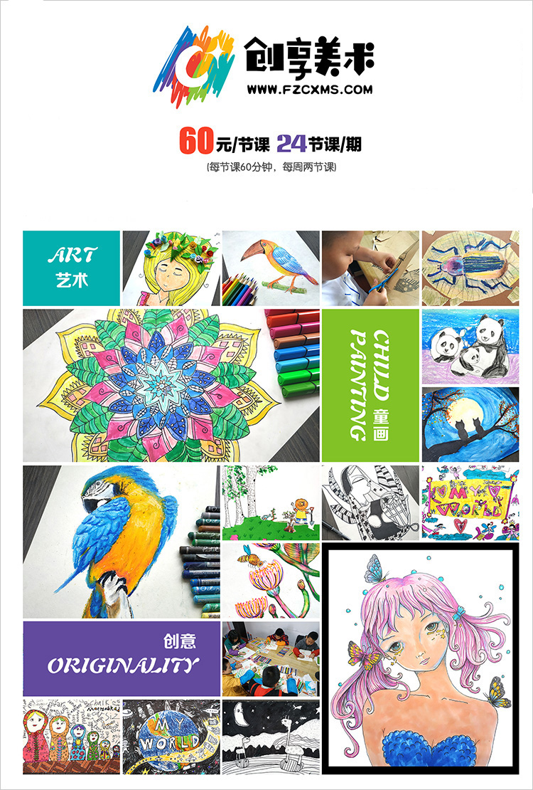 美术培训:60元/节课,1440元/24节课,每节课60分钟,每周2节课。