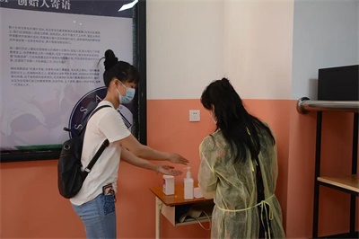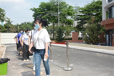 学生返校天,所有行李将集中消毒后再行至学生公寓。所有学生在公寓门口按照地面指示标志列队等待检查进入,每人间距1米以上,依次在公寓一楼入口处完成体温检测。