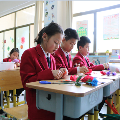 奉行尊重引领的快乐教育,以“思维欢实,生活充实,精神丰实,身心皮实”为学生培养目标,30人小班教学,在国际化教育氛围、中外教师共同关爱下,为培养国际精英人才奠定基础。独创“国家规定课程+英语特色课程+活动文化课程”三级课程体系,突出英语特色和丰富的特长培养。每周10节英语课(其中5节外教课),使用自编教材,小学阶段英语词汇量达2500个。多种特长类课程、活动课程、社会实践课程培养学生一技之长。让每一个孩子在尊重中阳光自信,在快乐中健康成长。