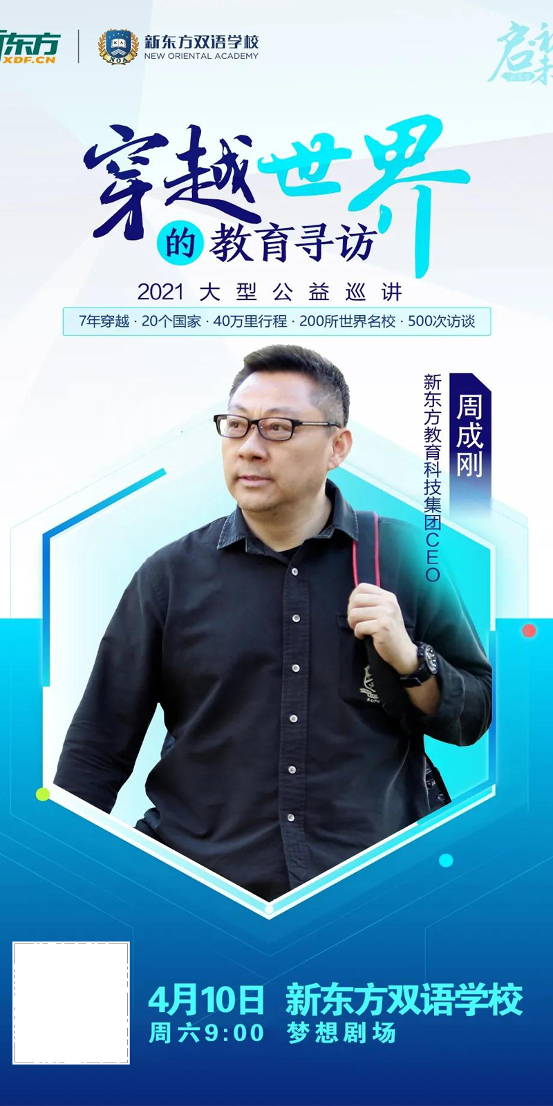 4月10日,2021年“穿越世界的教育寻访”大型公益巡讲将在金华市新东方双语学校举行,周成刚老师与你一同分享7年探寻世界名校的心路历程。