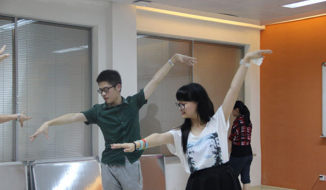 活动课我们多才多艺的李老师正在教孩子们拉丁舞